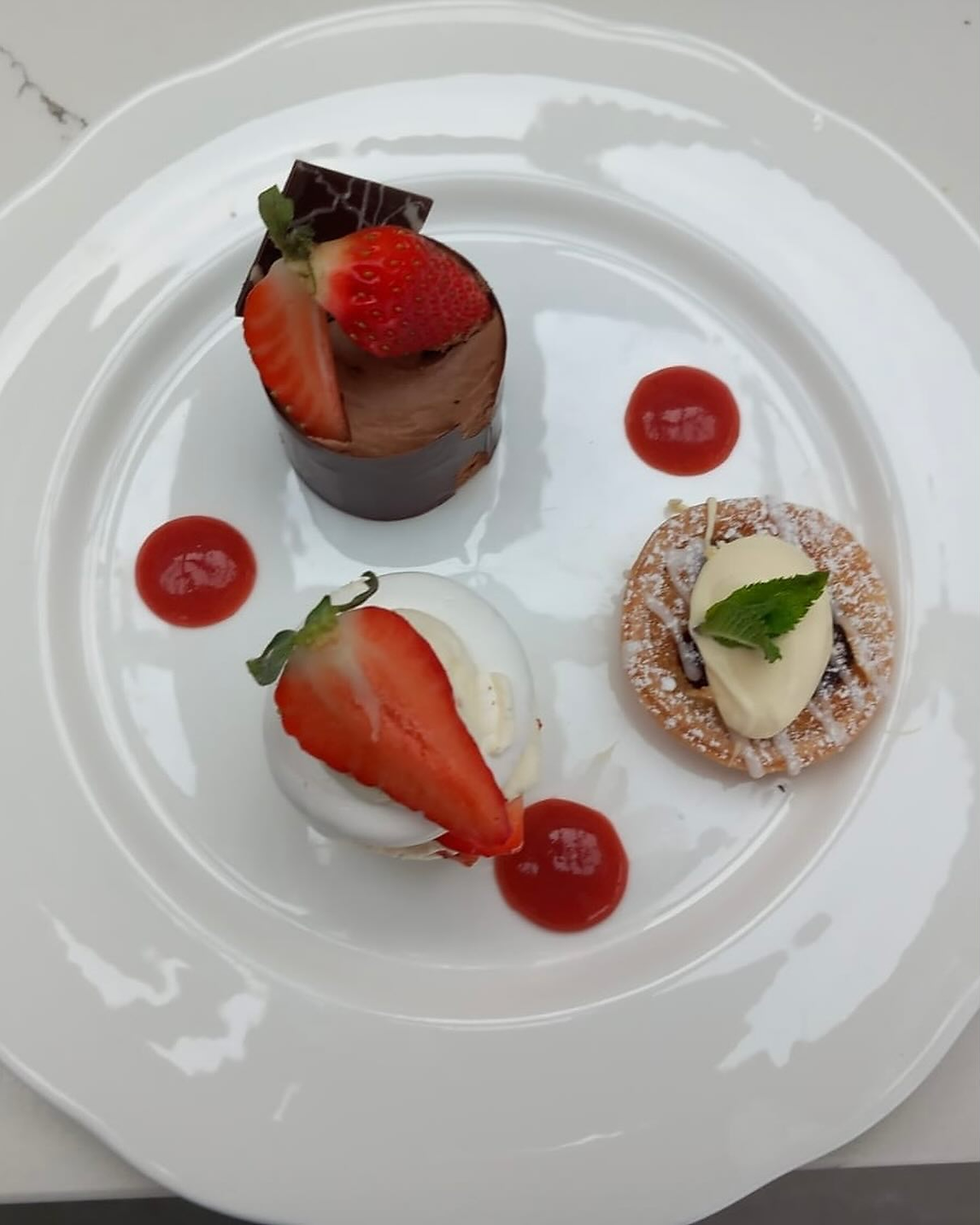 Canapés to start, Fillet of Beef en Croute for the main course finished off with a trio of puddings.